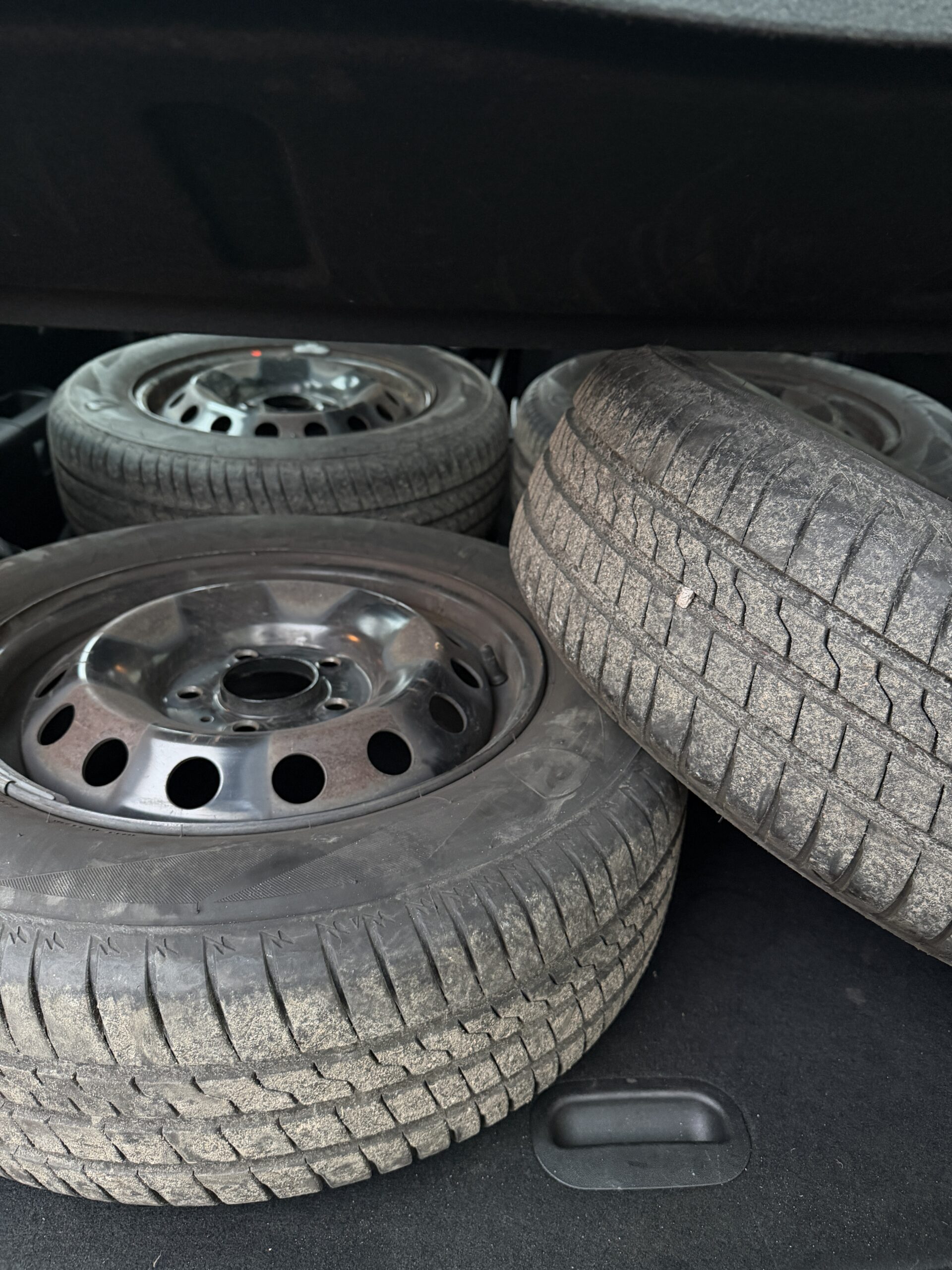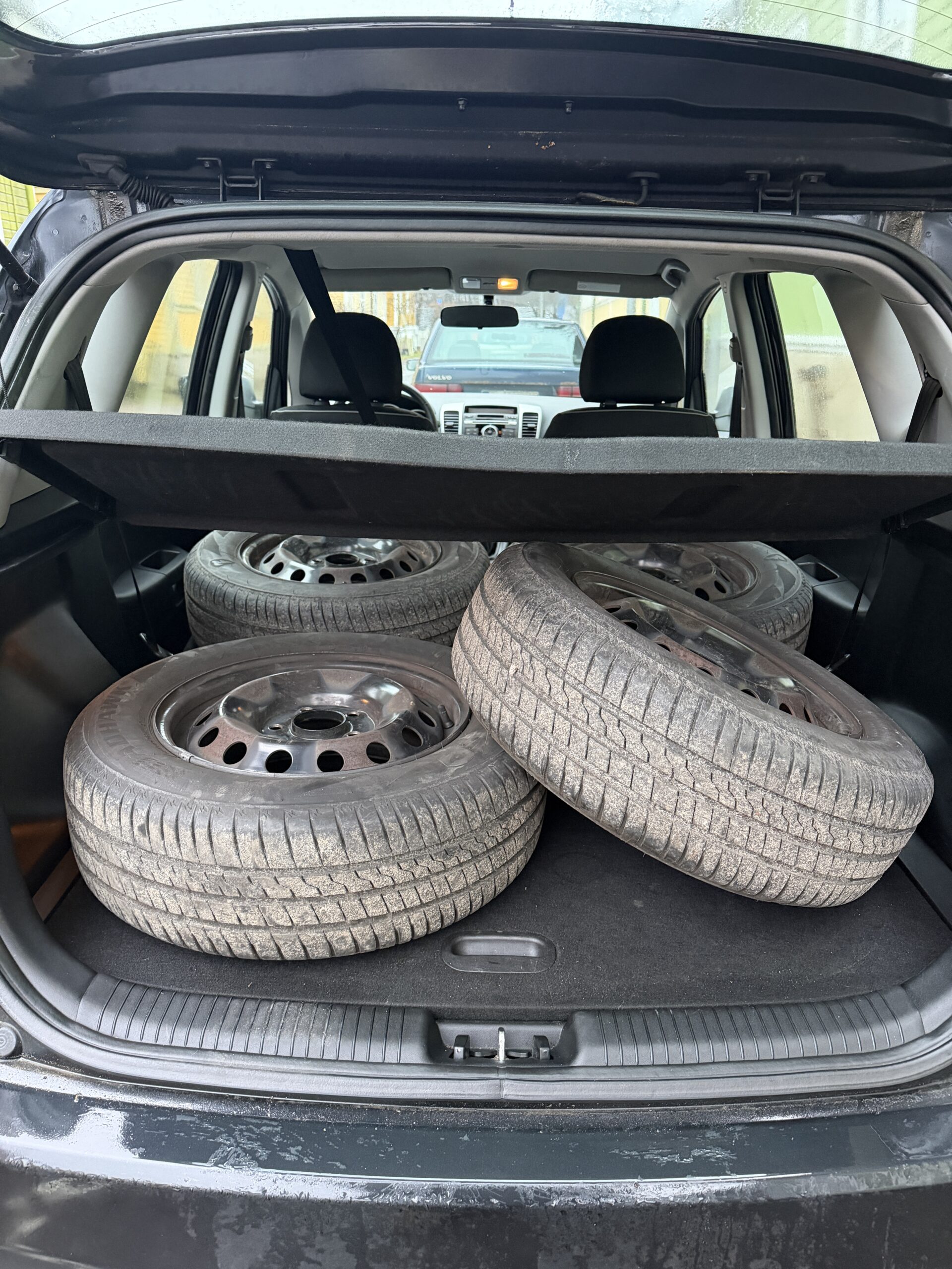 Autossa alla nastarenkaat, kesärenkaat takakontissa
