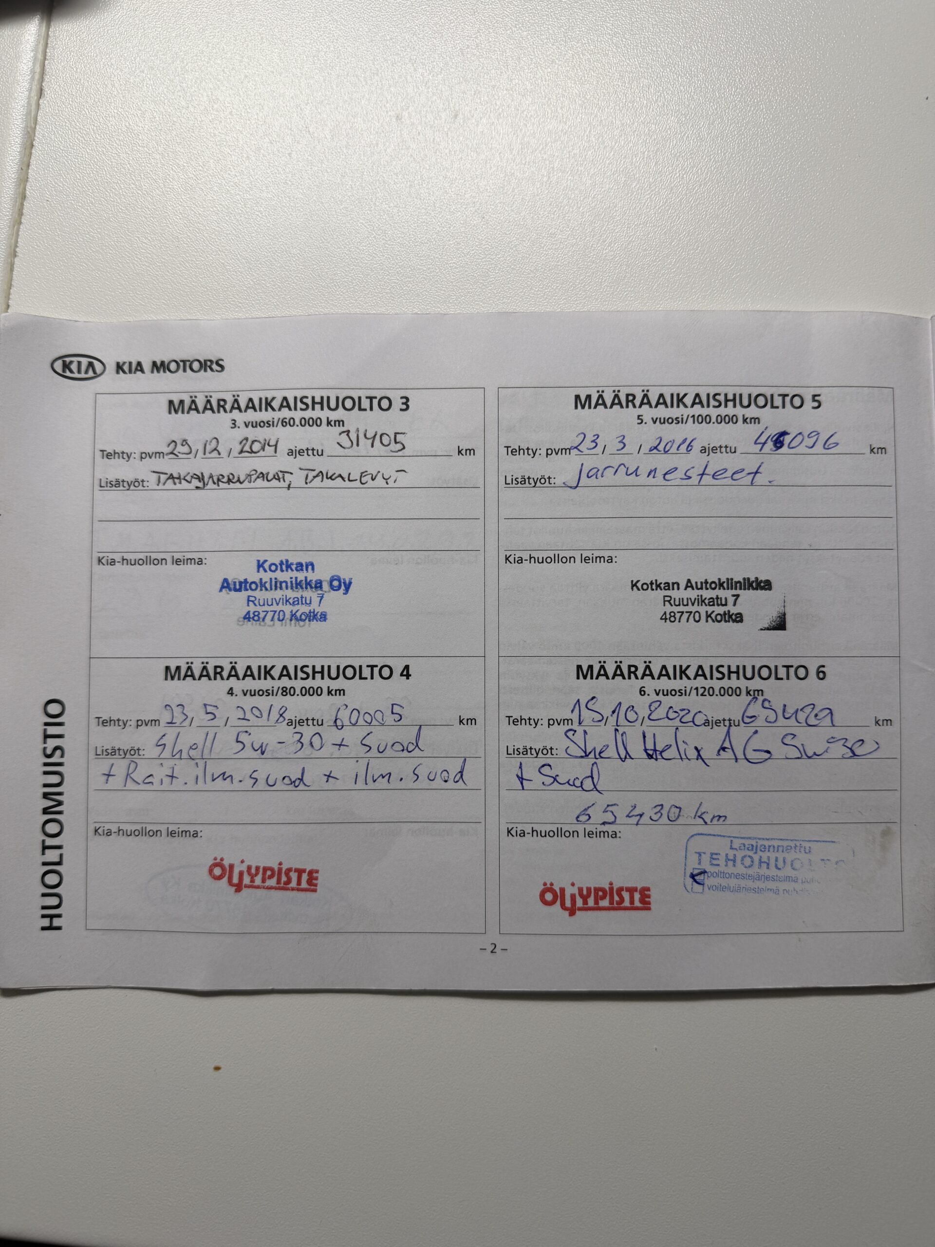 Huoltoja sitä ennen vuonna 2021, 66 774 km kohdalla, 15.10.2020 65 429 km kohdalla